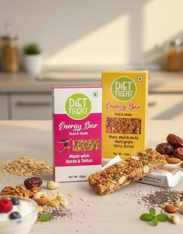 Diet Treat energy bars are made with natural ingredients like nuts, seeds, oats, and dates to keep you active and energized throughout the day.